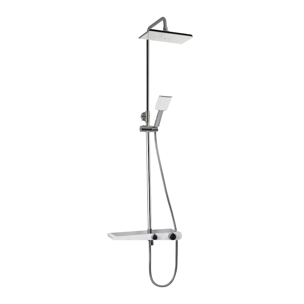 Душевой гарнитур (душ/стойка+тропич.душ+душ/лейка+смеситель) бел./хром GF mark 3073