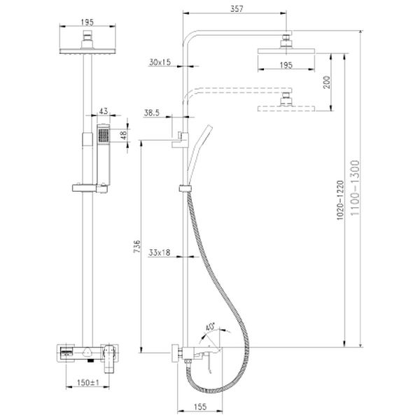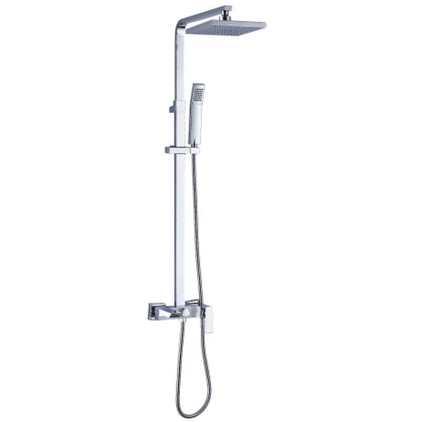 Смеситель для ванны и душа с регулируемой высотой штанги, поворотным изливом и верхней душевой лейкой “Тропический дождь”