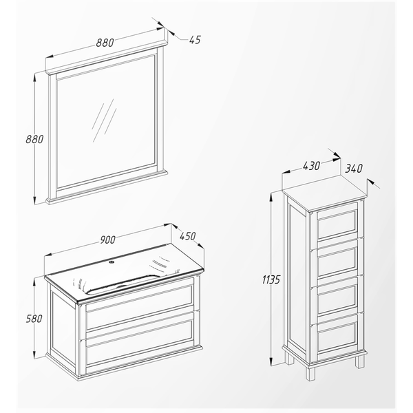 Великолепная подвесная коллекция ОПАДИРИС Гарда в неоклассическом стиле выполнена из массива ясеня с нанесением золотого патинирования (для отделки Бьянко). Мебель для ванной комнаты с отделкой Орех Антикварный произведена из массива бука. Коллекция комплектуется раковиной из литого мрамора и предлагается в уникальном размере 90 см. Особенно хочется выделить качественную фурнитуру под бронзу, придающую коллекции неповторимость дизайна.