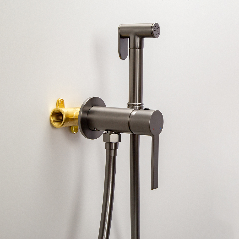 Смеситель AVS-811-431-GМ ELEGANT встраиваемый с гиг/душем оружейная сталь