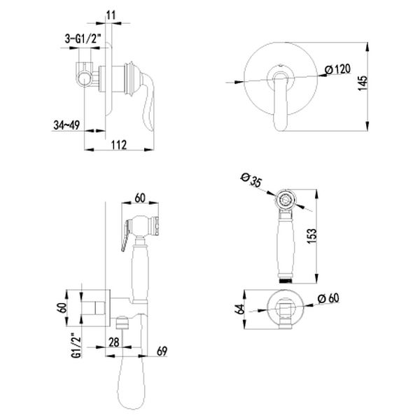 Керамический картридж 35 мм Подключение для шланга с креплением для лейки Аксессуары в комплекте: лейка для биде с нажимным механизмом, шланг 1,5 м Металлическая рукоятка