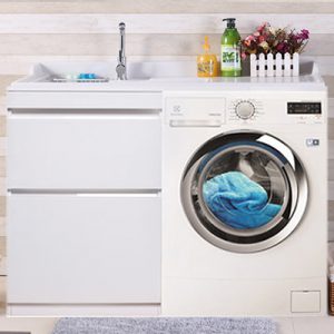Центральное место в коллекции мебели класса люкс Style Line Даллас отведено тумбе с раковиной. Комплект сочетает в себе функциональность и лаконичный дизайн. Корпус и фасад из влагостойкой МДФ Kronospan ламинированы корейской пленкой толщиной 2,8 микрона. При натяжении пленки каждый элемент изделия проклеивается клеем Henkel. Глянцевый блеск покрытия легко поддерживается с помощью салфетки. Два выдвижных ящика из ЛДСП Kronospan установлены на направляющие скрытого монтажа Boyard с помощью дюбель-стяжек Hettich. Евровинты значительно увеличивают срок эксплуатации оборудования. Особенностью модели является возможность установки стиральной машины. Прочная раковина из искусственного камня устойчива к воздействию агрессивных химических средств.