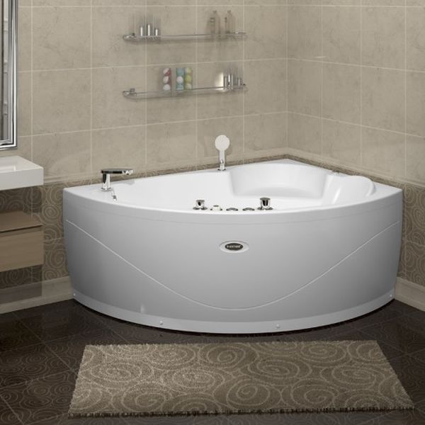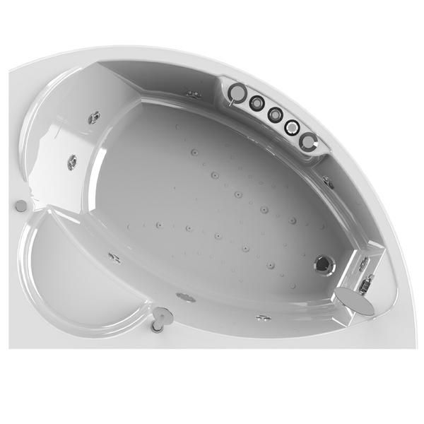 В конструкции гидромассажной ванны “Лоуэл” учтены анатомическое особенности строения тела, спинка выполнена с оптимальным наклоном, внутреннее пространство обладает достаточной шириной для комфортного купания, есть практичный подголовник и место для сидения на угловом бортике.